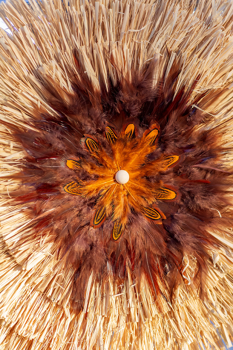 Le juju hat peut compter plus de 1 500 plumes, disposées une à une pour former un motif rayonnant et harmonieux. Ce travail minutieux témoigne d’un véritable savoir-faire artisanal transmis depuis des siècles dans les communautés camerounaises.